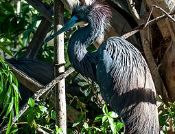 Tricolored herons eat mostly small fish that they often chase and herd with open wings, sometimes looking like they are doing a crazy dance.